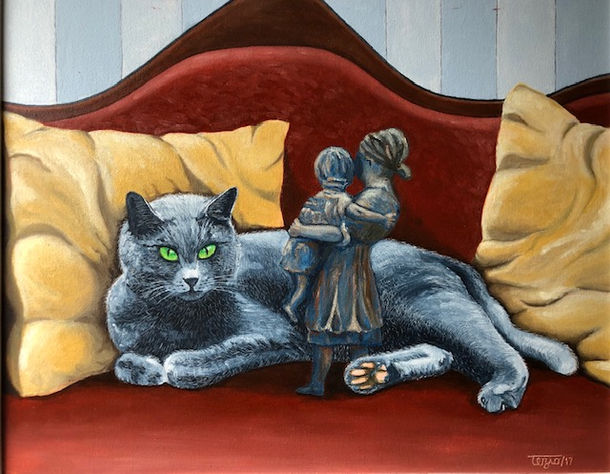 Ma anche i ritratti, sia degli esseri umani che degli animali (in particolare i gatti) sono stati per me un’occasione per ricreare e ricostruire una quotidianità domestica che richiama quella serena atmosfera che, di norma, contraddistingue ogni ambiente famigliare.